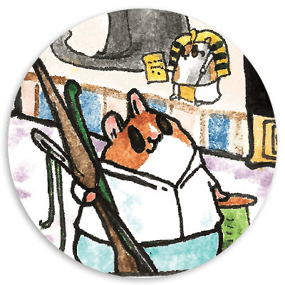 The muscle of the Robber Mice Gang! Natasha is brave to the point of nearly being fearless, but just clever enough to stay on the right side of safety. Claiming to be “the mightiest prey,” Natasha has no trouble reminding predators that sometimes courageous things come in small packages. Loves to party.