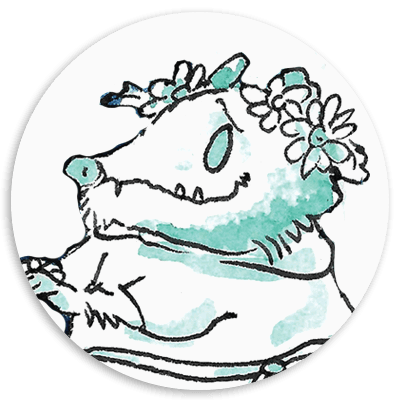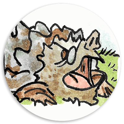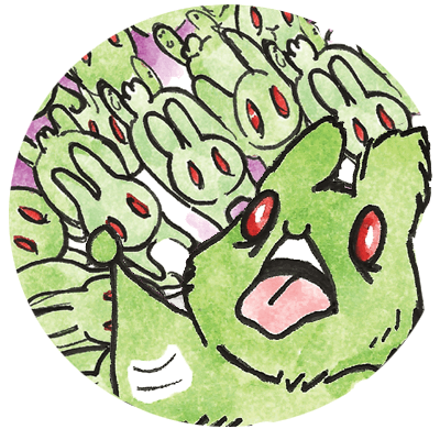 Grumpy and mysterious, Dr. Scuttles is an enormous snapping turtle and local cryptid expert. Rumors still persist of his podcast and its sudden cancellation. (Junk the raccoon was a big fan!)
