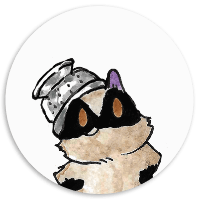 Queen Magnet’s appraiser. Gutter holds a position of honor in the raccoon court, as an expert in trash and found items.