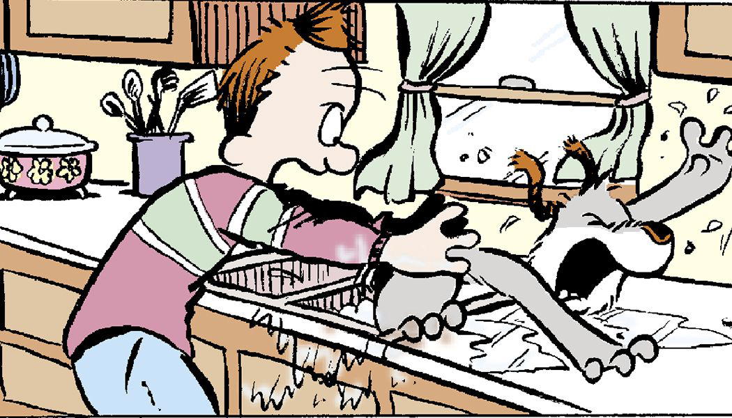 Buckles may be frightened of the mailman, but he's ready to attack this smaller trespasser! Fortunately for the young carrier, he packs a powerful throwing arm with keen aim!