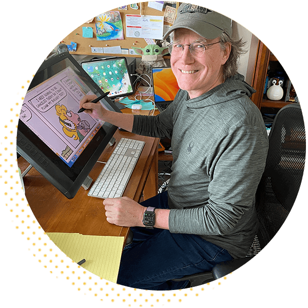 Amend attended Amherst College where he majored in physics and served as editorial cartoonist for the twice-weekly school paper. As graduation loomed and career panic set in, he decided to give comic strip syndication a shot. Though his early efforts were rejected, he kept at it in his spare time while working in the San Francisco film and animation industries.