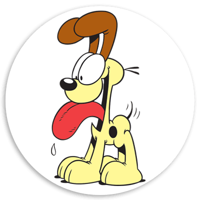 Lovable, but brainless as a brick, Odie is Garfield's faithful friend ... and often the butt of Garfield's jokes. Odie never thinks, sometimes barks, and always slobbers.