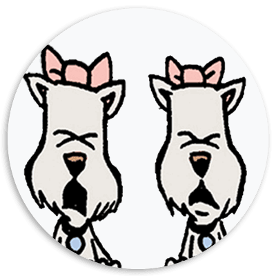 This pair of Yorkies is diabolically evil and can always be found on guard by their living room window, scheming to humiliate and annoy all who dare to pass by.