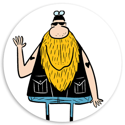 A biker who travels around with his tough, sarcastic cat companion ... Harley's goal in life is to one day jump Pointy-Rock Canyon and become a folk hero.