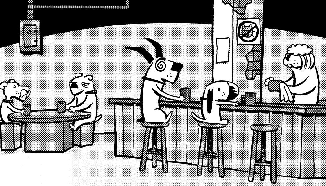 Dogs, like certain barflies, want to go where everybody knows their name (other than the vet’s office). So they gather at the Pooch Café to compare notes on such weighty issues as avoiding baths, zebra-flavored kibble, toilet breath, and the construction of a giant catapult with which to hurl all the Earth’s cats into the sun. Don’t look for it out on the main street—its actual location is a canine top secret that was only compromised that one time they got a pizza delivered.
