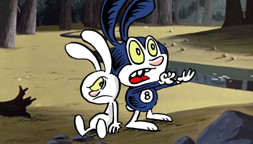 Behold, two rabbits: Eightball, an ever-upbeat offbeat optimist, and Weenus, sarcastic and small, one-eyed, bitter. The latter is possessed by an Ignatizian longing for the unobtainable Trixie—bohemian, reader of existential philosophy, master of the diatonic button accordion. And please take note of the foxes: Pif, rabbit-friend, smarter than he looks, caretaker of Jumpy the flea; and Preston, Pif’s dad, a hardcore carnivore, rabbit-hungry and dangerously dumb. There is beguiling beauty in this strange and colorful world, and also a duck named Doodles. Did we mention the MacGuffin in the briefcase? Let the show begin.